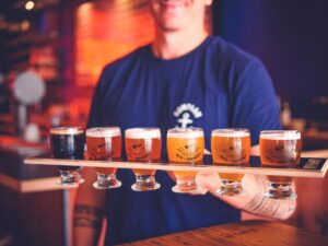 Bierproeverij van 6 proefglaasjes (15 cl.) met een bitterbal bij Kompaan Binnenhaven. |